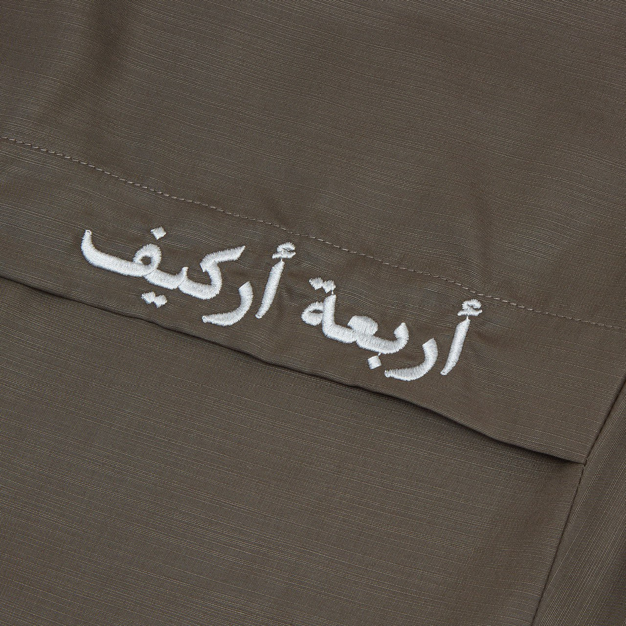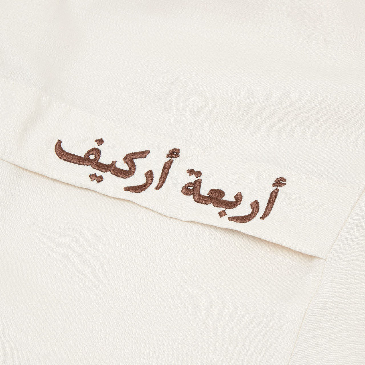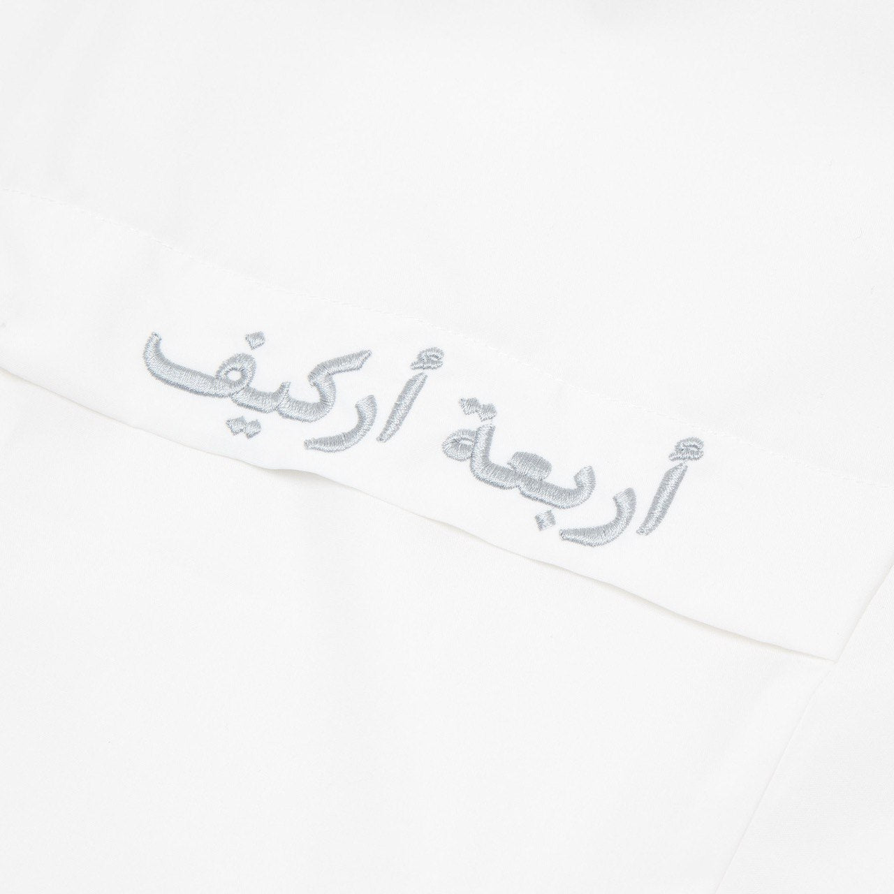 In addition to the liquid metal ن logo, the t-shirt features our classic ‘Arba Archive’ arabic logo on the back right shoulder, symbolising a bridge between the past and the visionary future